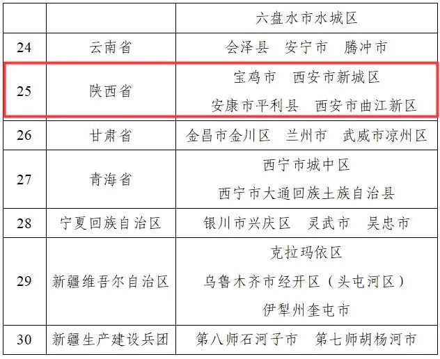 安康市平利县、西安市曲江新区入选