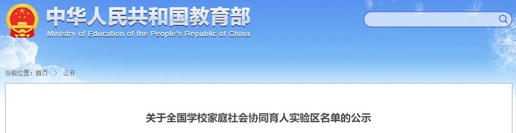 关于全国学校家庭社会协同育人实验区名单的公示