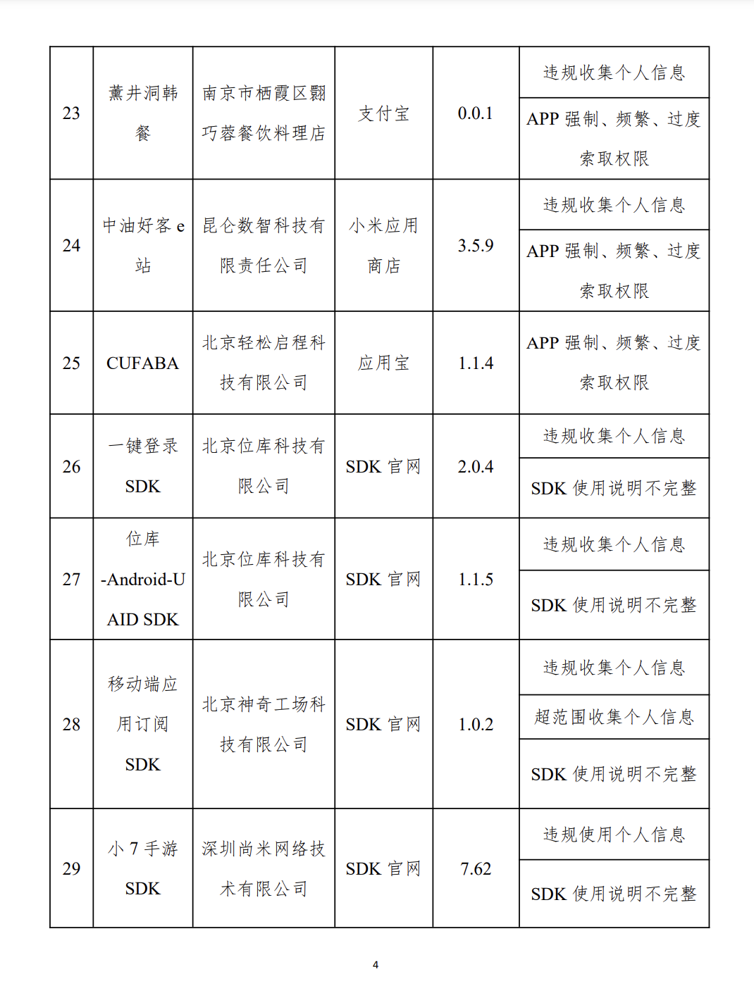 除违规APP外,工信部此次也公布了6款违规SDK,分别为北京位库科技有限公司旗下的一键登录SDK、位库-Android-UAIDSDK,北京神奇工场科技有限公司旗下的移动端应用订阅SDK,深圳尚米网络技术有限公司旗下的小7手游SDK,北京金域互动科技有限公司旗下的AppicAdSDK以及北京顶象技术有限公司旗下的顶象无感验证SDK。