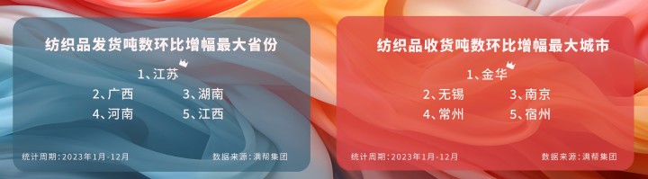 满帮货运大数据:2024初纺织品运输吨重同比增长53.8% 长三角纺织品产销忙
