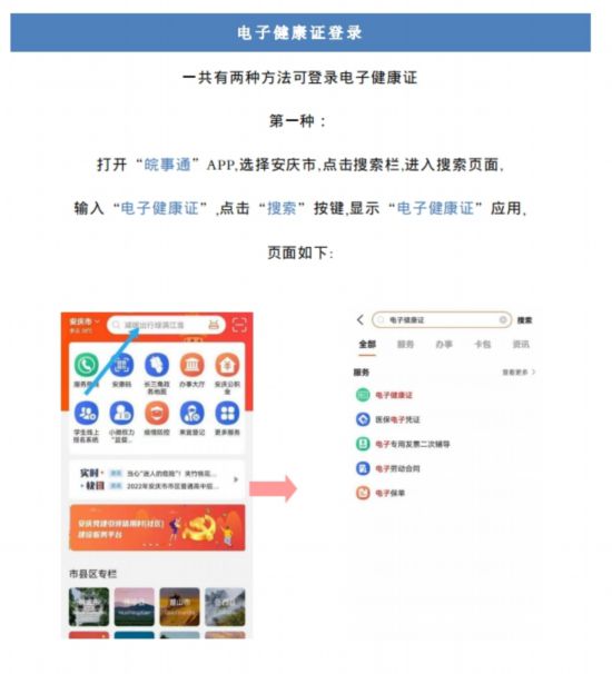 可就近前往各政务服务自助工作站,通过刷身份证、扫“安徽码”等自行完成“电子健康证”的查询和打印(站点分布详见附件6)。
