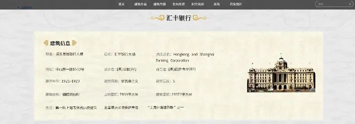 系统根据不同分类标准,对1323个历史建筑打上了多个标签。在“建筑专题”模块,可以通过所处位置、建造年代、历史意义等特征,对历史建筑进行筛选、展示,形成专题历史建筑档案库,筛选条件可以自定义。