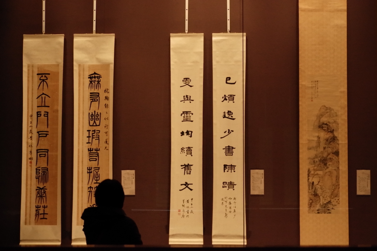 展出大量书画作品、篆书、集石鼓字联等以及重要印谱,包括吴昌硕行书《槐安》《涧上奇松》《临石鼓文》《临张迁碑》《缶庐印存》《完白山人印存》等,其中的“吴昌硕的交游”部分则关注其师友与弟子作品,包括赵之谦、任伯年、蒲华、邓石如、王一亭、王个簃等的作品。