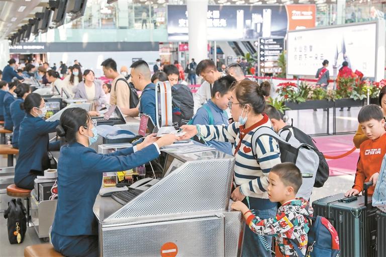 春运首周,深圳机场共运送旅客超过123万人次,同比增长61.7%,单日最高超过18.2万人次。