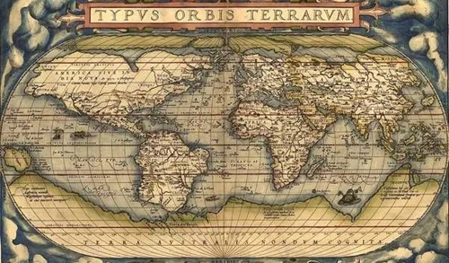 16世纪比利时地图绘制师亚伯拉罕·奥特柳斯绘制的世界地图。