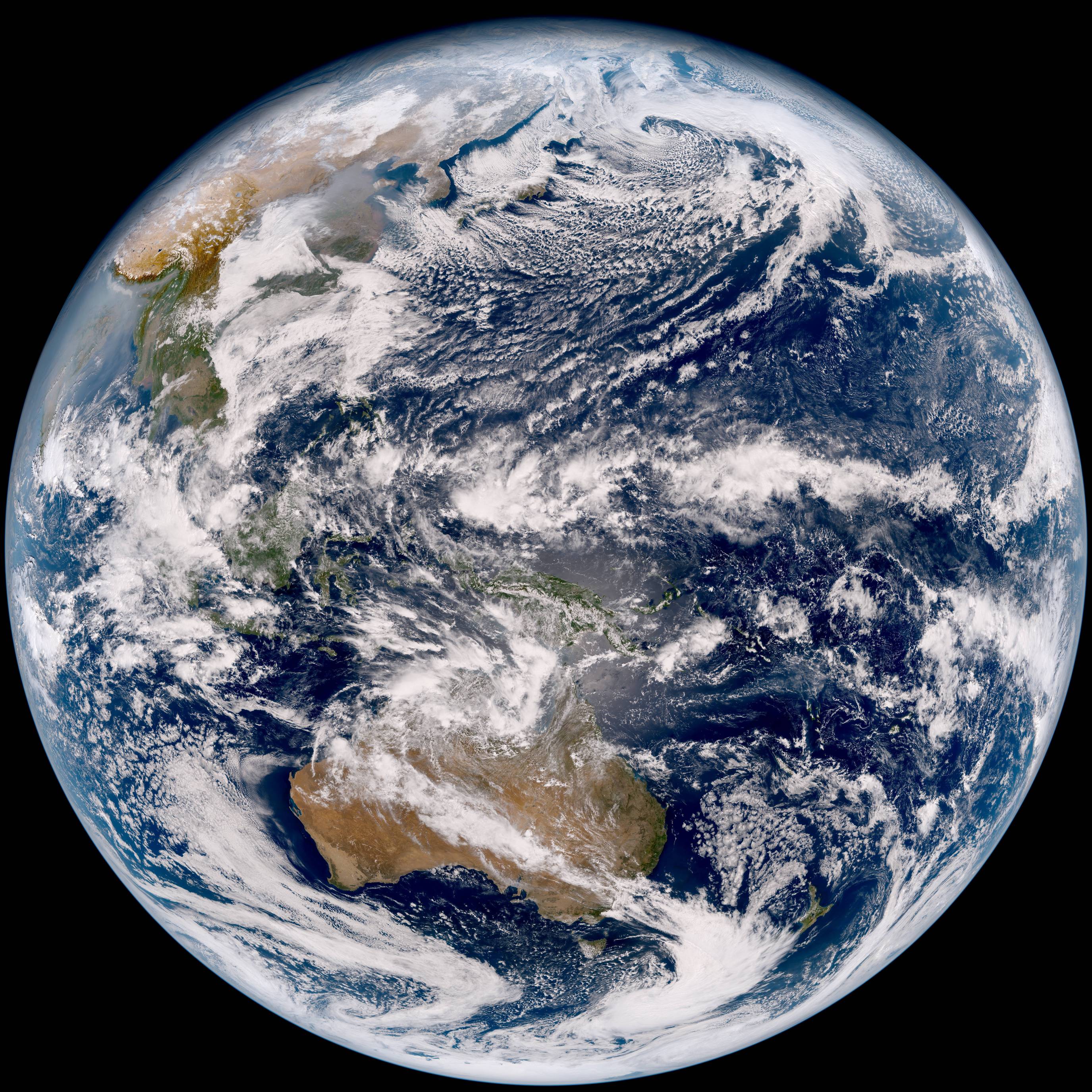“向日葵9号”也拥有16个通道,与美国GOES-16相似,因此获取的卫星观测图像类似。日本气象厅官网也制作了一张色彩鲜明的地球清晰照片,超高分辨率的图像详细展现了云、海洋、沙漠等细节。