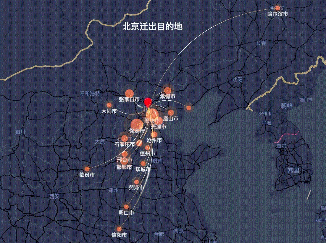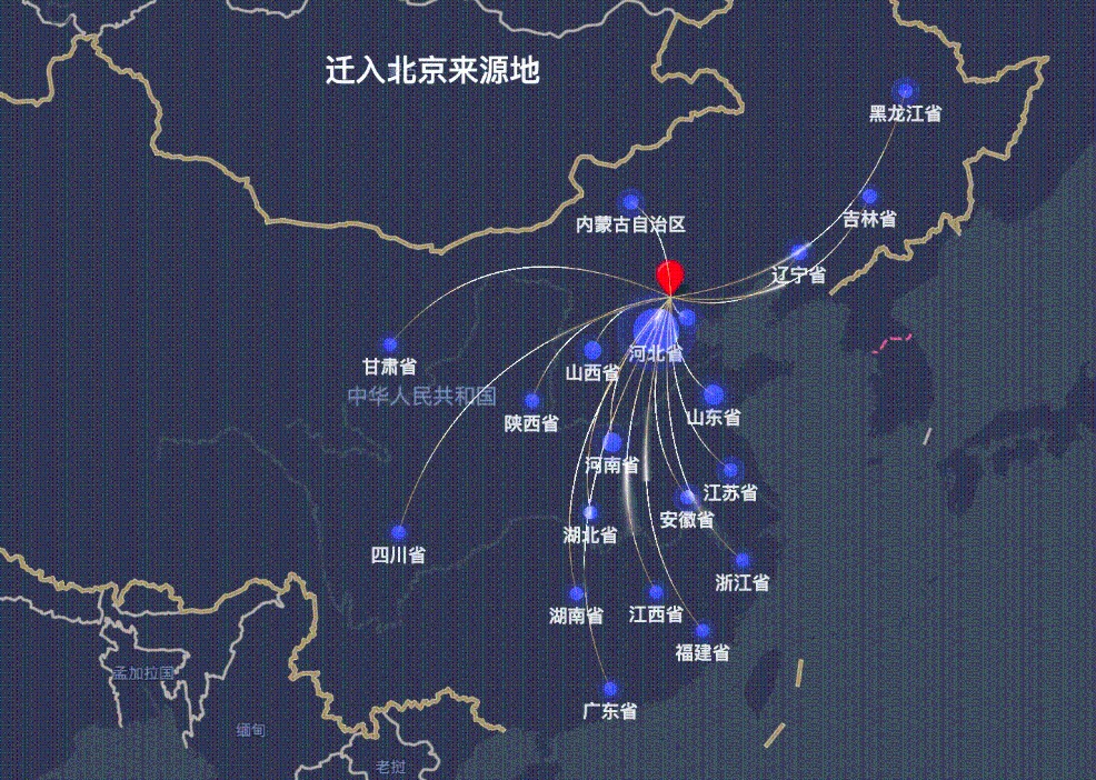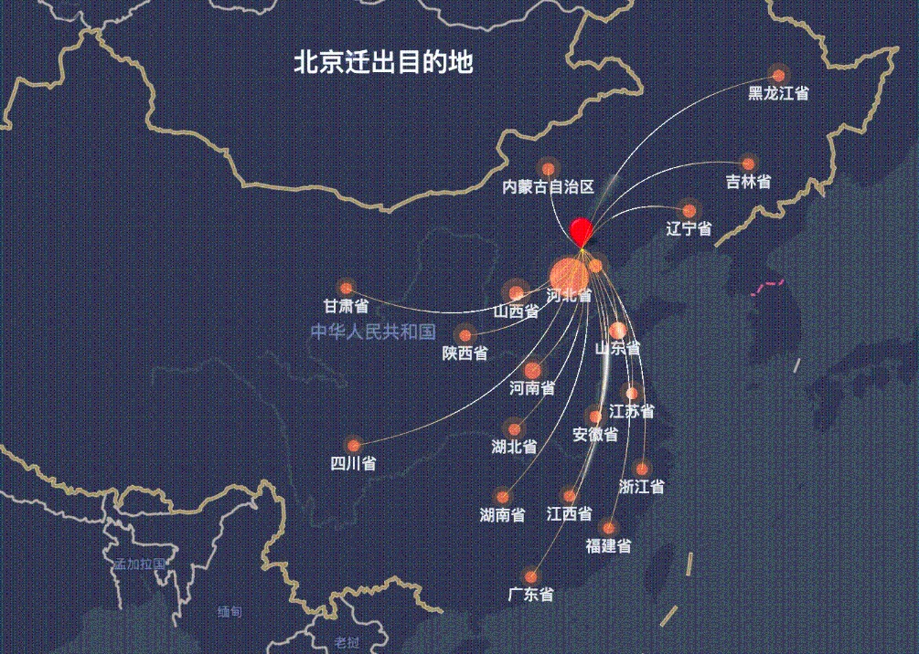 观察春节前后北京市的迁入迁出省份数据,腊月二十九(除夕前一天)的迁出来源地前十省份和正月初八(假期最后一天)的迁入来源地前十省份完全相同,仅有安徽省和黑龙江省的排名略有变化。