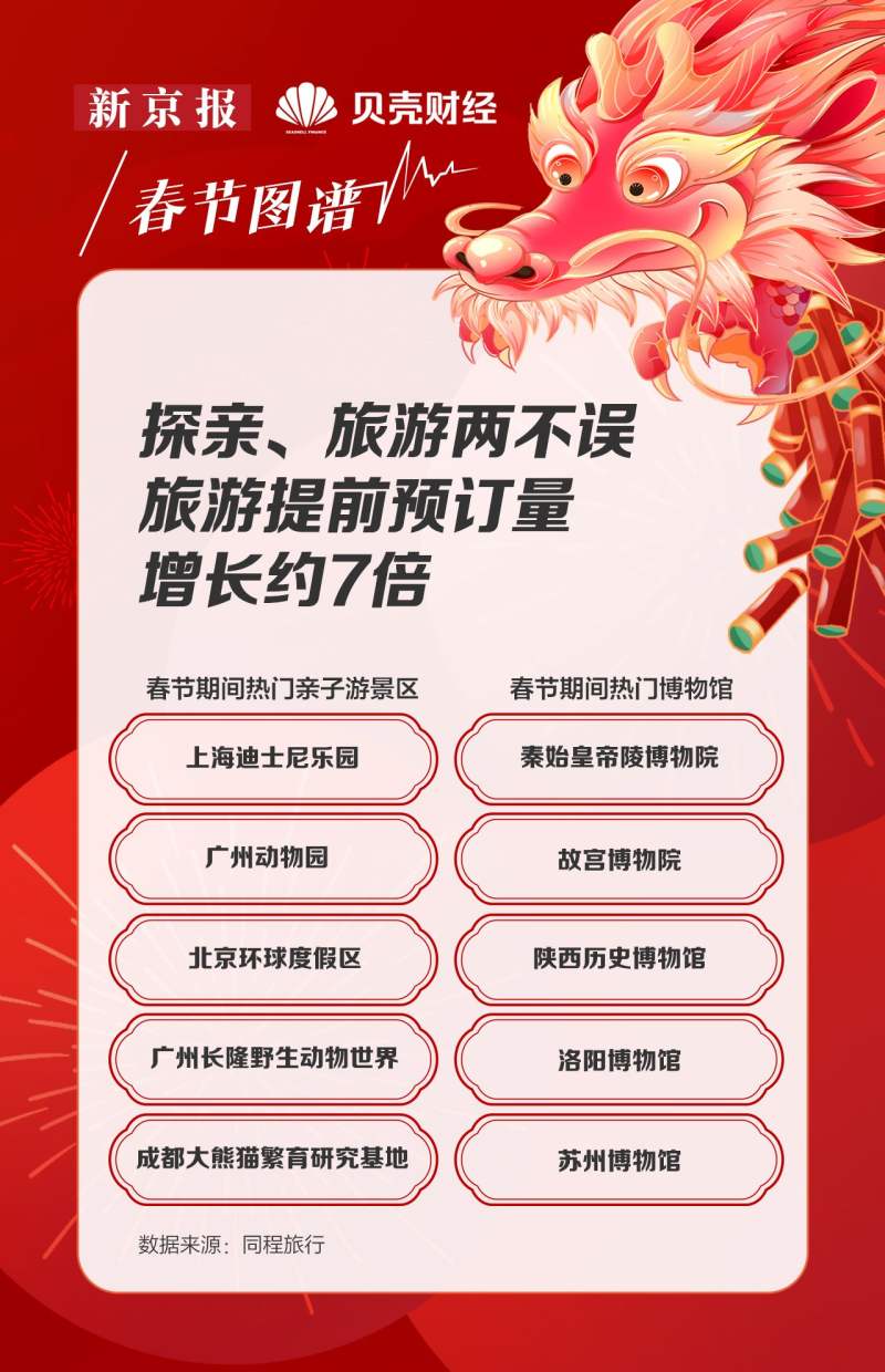 春节也是举家出游的重要时段。同程旅行报告显示,2024年春节热门亲子游景区为上海迪士尼乐园、广州动物园、北京环球度假区、广州长隆野生动物世界和成都大熊猫繁育研究基地。