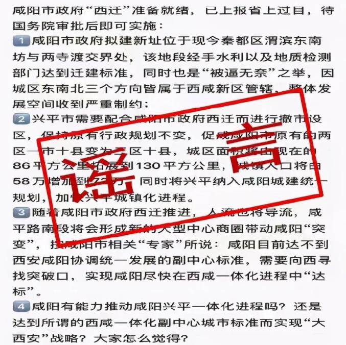 原标题:《【辟谣】咸阳政府西迁准备就绪?假的!违法行为人已被拘留》