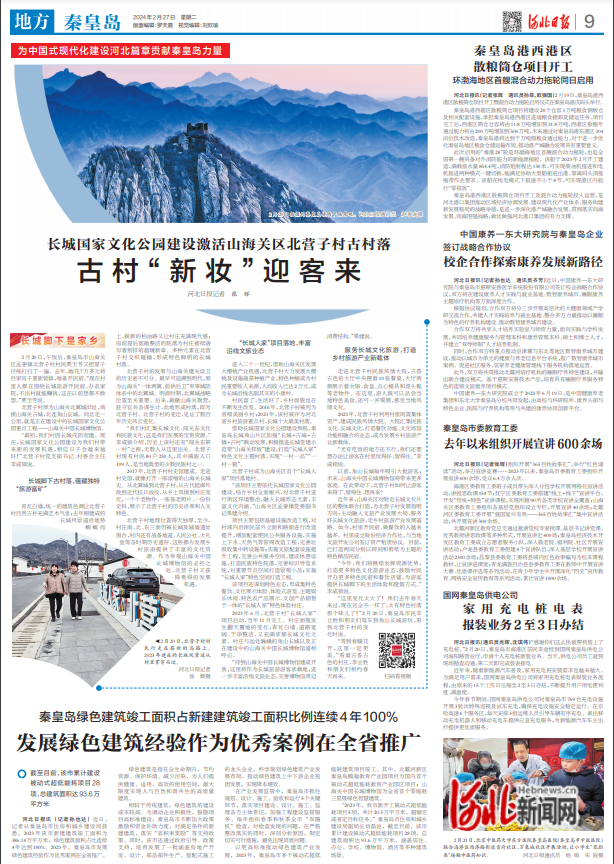 借助长城国家文化公园建设契机,秦皇岛长城角山片区加强“长城+古城+古镇+古村”联动发展,积极推进长城党建示范带“山海关样板”建设,打造“长城人家”特色文化主题村落,实现“一村一品”“一村一貌”。