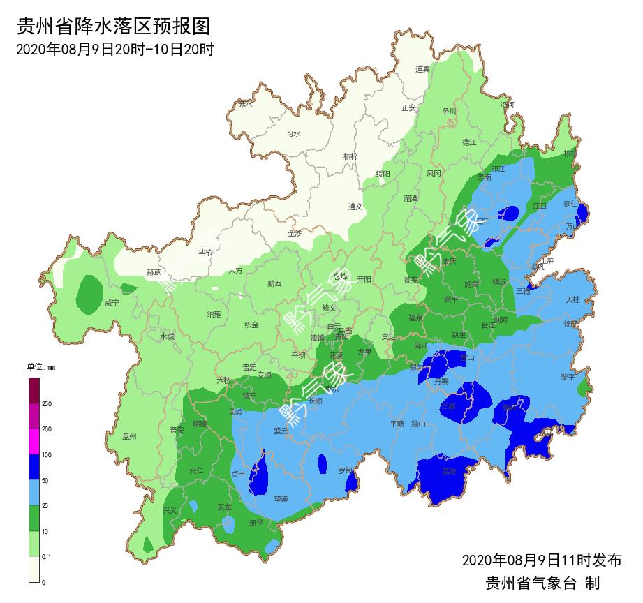 赤水、习水、仁怀、桐梓、正安、道真、务川、沿河、德江等9县市地质灾害气象风险较高,为黄色预警。