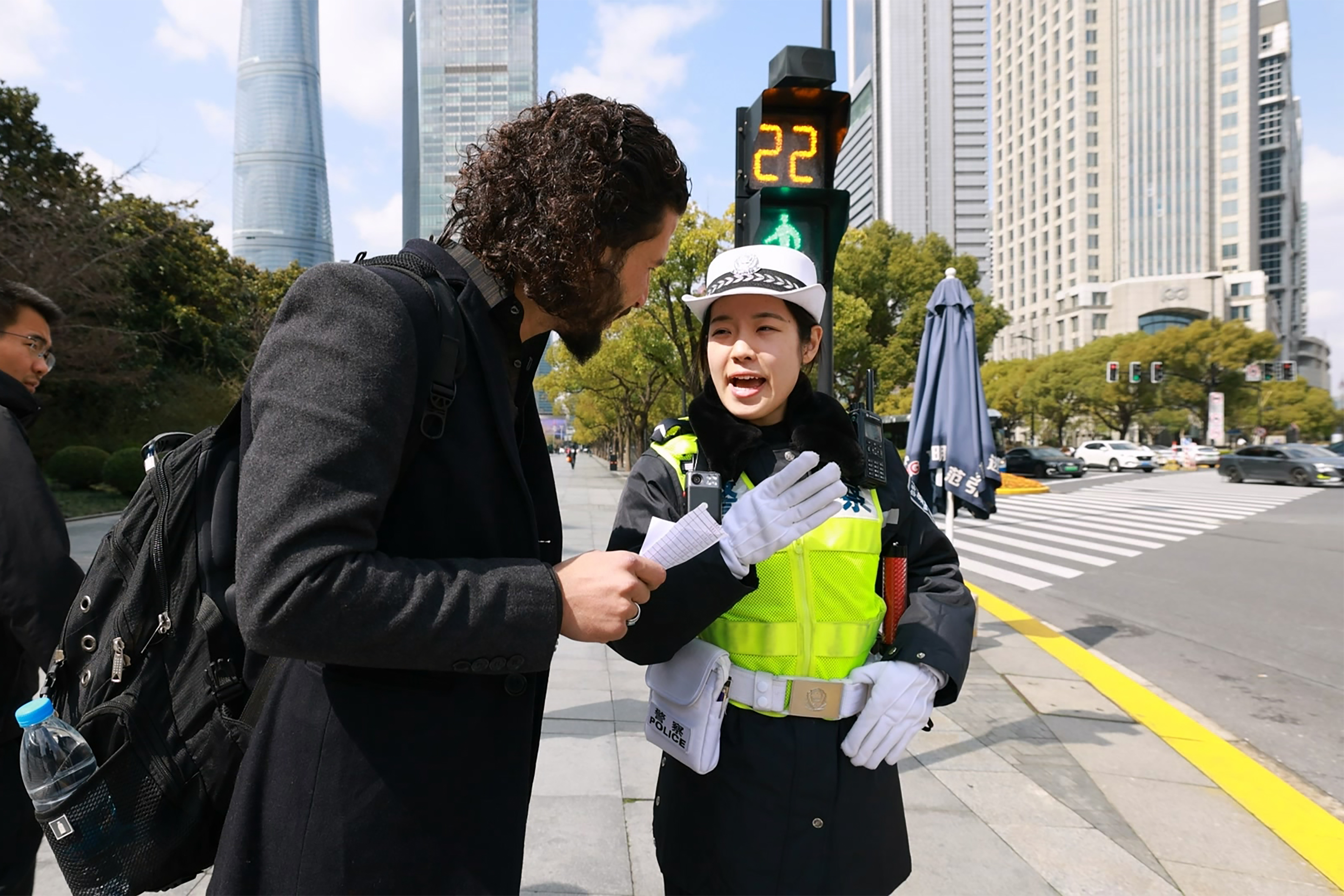 “Pedestrians must walk on the right side of the road in China……”在上海中心的一家知名会计师事务所里,朱菱的英文版交通法规宣传赢得满堂喝彩,外籍高管Wilson更是起立点赞。