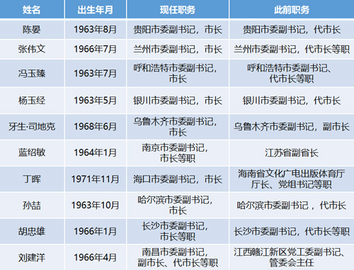 据统计,今年以来,全国至少有11个省会城市市长调整,其中呼和浩特、哈尔滨、南京、南昌、长沙、海口、贵阳、兰州、银川、乌鲁木齐等10个省会城市市长履新,郑州市市长职位空缺待补。