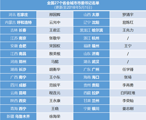 2018年全国两会后人事观察一:一日内五省委书记调整 31省区市党委书记配齐