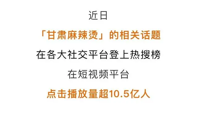 不仅如此,甘肃文旅厅官微3月13日再次发文称,近日,“甘肃麻辣烫”的相关话题在各大社交平台登上热搜榜在短视频平台点击播放量超10.5亿人,一碗手擀粉+一盘麻辣菜,这一套打卡吃法,让天水这座古城,再次走入大众视野,成为餐饮业和旅游业两大行业的新晋“顶流”。
