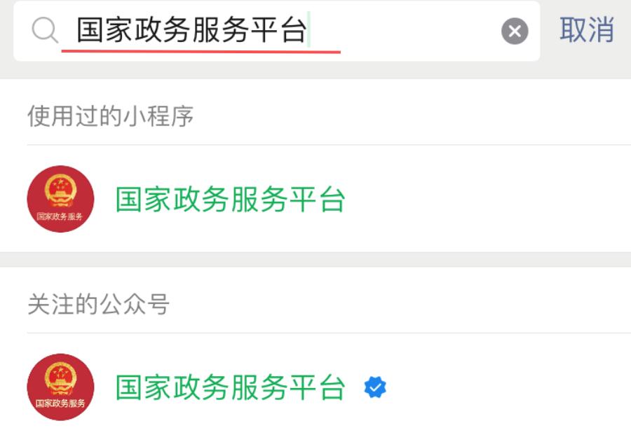 务必通过微信搜索进入“国家政务服务平台”小程序