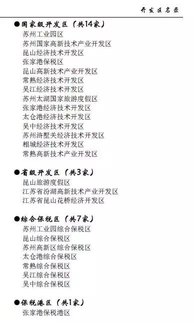 此外,早期开发区的设置上,省府的支持力度很大。目前为止苏州已经有14个国家级开发区,3个省级开发区,7个综合保税区,整体规模不输一线城市。