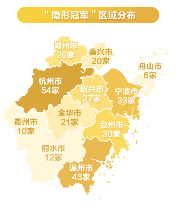 浙江“隐形冠军”分布地图:杭州、温州、宁波占前三