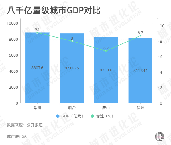 解读:2021年跻身中国内地“GDP万亿俱乐部”的城市共24个,江苏省以4个万亿城市的名额,占到了总数的六分之一。谁能成为下一个万亿之城?从目前公布的经济数据来看,同处8千亿量级的常州、烟台、唐山以及徐州成为“后备军”。