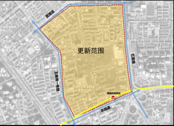 据河东区此前披露的信息显示,井冈山路周边片区城市更新项目位于河东区春华街道,东至红星路,南至华昌道,西至王串场一号路,北至真理道,轨道交通2号线顺驰桥站以北,占地面积约48.25万平方米。