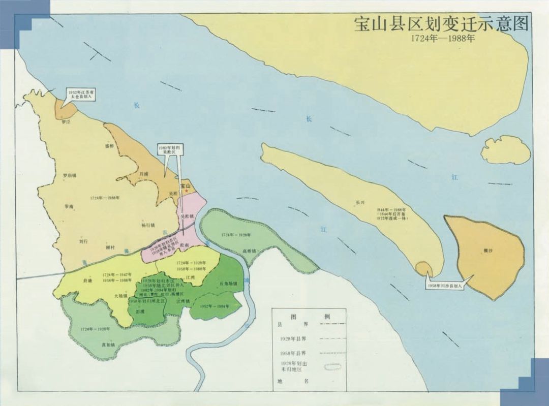 On January 17, 1958, the State Council approved the transfer of Jiading, Baoshan and Shanghai Counties in Jiangsu Province to Shanghai Municipality.