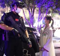 ▲近日,河南周口,当地公安在广场举办活动,发放小国旗并和群众合影留念。一名小女孩上前与特警合影时,特警小心翼翼地用手捂住枪口与她合影。网友:这才叫素质暖心!