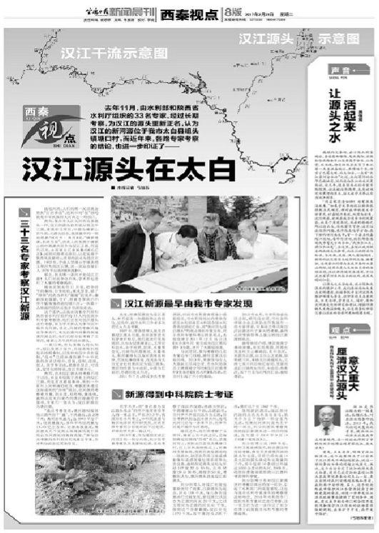 此外,《宝鸡日报》还在同一版面内刊发了宝鸡市老科协水利专业委员会主任樊维翰的署名文章《厘清汉江源头意义重大》。樊维翰表示,前述考察成果明确了汉江的源头,纠正了以前关于汉江源头不确切的提法,“使这一曾经争论不休的问题尘埃落定”。