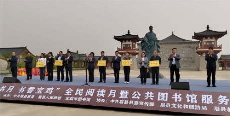 4月19日上午,由市委宣传部、市文旅局主办的2024年“三秦书月书香宝鸡”全民阅读月暨公共图书馆服务宣传周活动启动仪式在眉县横渠书院广场举行。