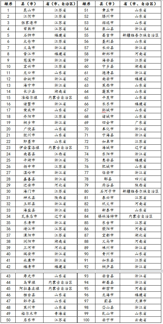 附:“赛迪百强榜-县域经济100强(2016)”榜单