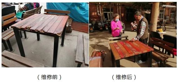 近日,重二社区网格员在巡查院落时发现,辖区一号南街坊的一处公共座椅出现破损,需尽快翻新维修。很快,了解到相关情况的一位居民“毛遂自荐”,与辖区志愿服务队成员一起对座椅进行了翻修,得到了大家的纷纷点赞。“邻里间时常相互帮助,能为大家做点‘小实事’,我自己也觉得很开心。”该居民道。(徐艳丽 文/图)
