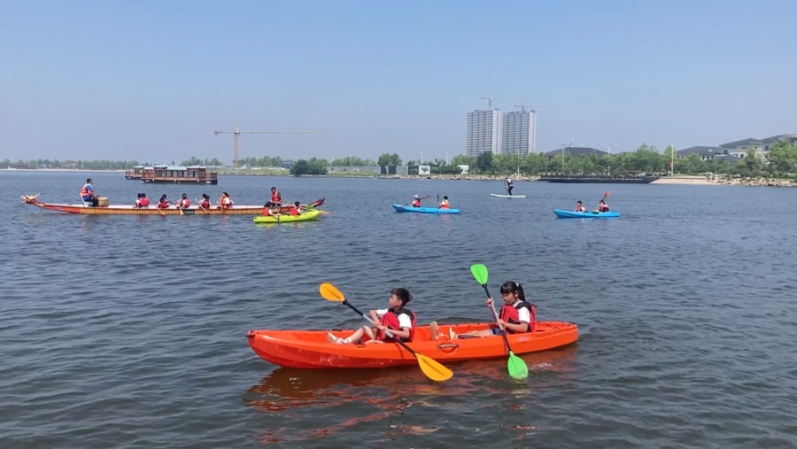 900亩的蓝湖公园是一处集商务休闲、观光旅游等于一体的开放式休闲度假区域。这里开发了水上电动娱乐项目和脚踏游乐船项目,配备了皮划艇、桨板等水上运动设施,还可提供水上餐饮、水上婚礼等相关服务。等到夜晚,五光十色的彩虹桥横卧在平静的水面之上,发出熠熠夺目的光彩,用手机随手一拍便是风景。