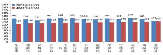 2024年3月份,全市臭氧平均浓度为135.3微克/立方米。与去年同期相比,改善15.8%。全市臭氧浓度最好的是乐陵市,为125微克/立方米;最差的是夏津县,为143微克/立方米。12个县市区均同比改善,其中,同比改善幅度最大的是乐陵市,改善23.3%。