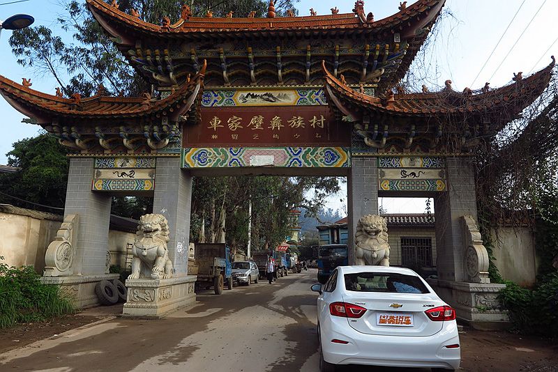 随后的坡度较大,而且很窄,两旁是连成一片的农家。行驶2公里,来到碧鸡关牌楼,此处距昆明16.8公里。牌楼之后,是碧鸡关村。