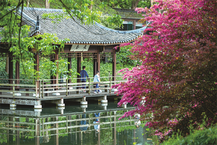沿着长堤,还可以参观始建于宋代的小隐园。面积不大,属于花圃的园中园。三座仿古别墅,分别由曲折廊桥连接,小桥流水,楼阁水榭,是典型的江南私家园林。