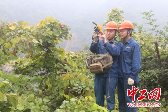 周红亮(左)和同事在检测电网线路。中工网记者 朱晶晶 摄