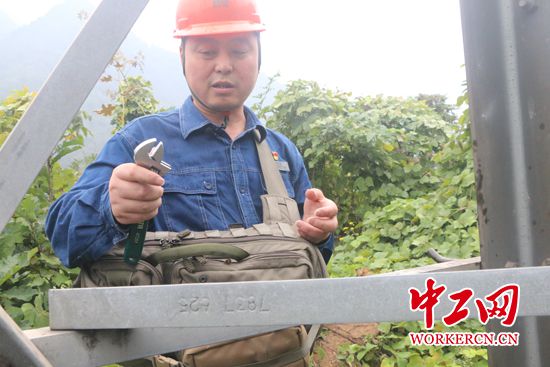 周红亮在检测电网铁塔。中工网记者 朱晶晶 摄
