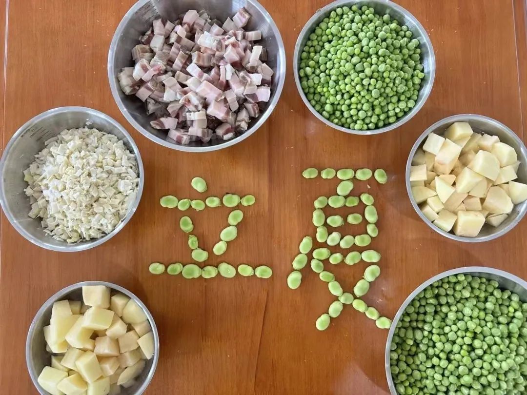 据说在立夏吃“疰夏饭”,主要是为春去夏来接力之用。糯米饭搭配白鲞肉、豌豆、蚕豆、咸肉、土豆、红萝卜、香菇、笋丁等,配料丰富,色彩鲜艳,如同夏之前奏。米饭的香味、蔬菜的鲜味,光想着就要流口水了。