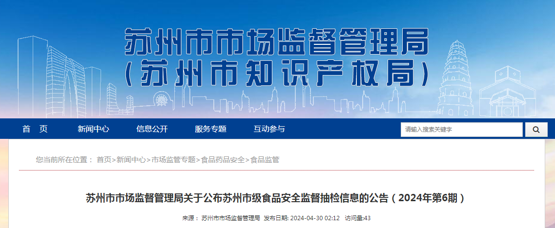 苏州市市场监督管理局关于公布苏州市级食品安全监督抽检信息的公告(2024年第6期)