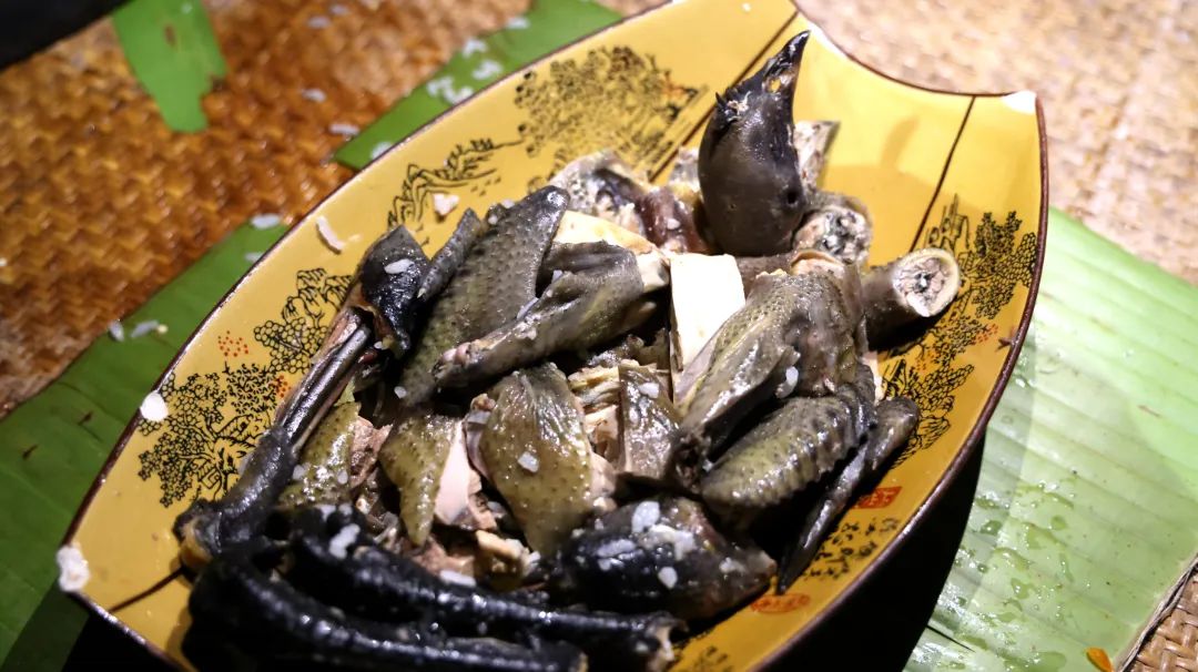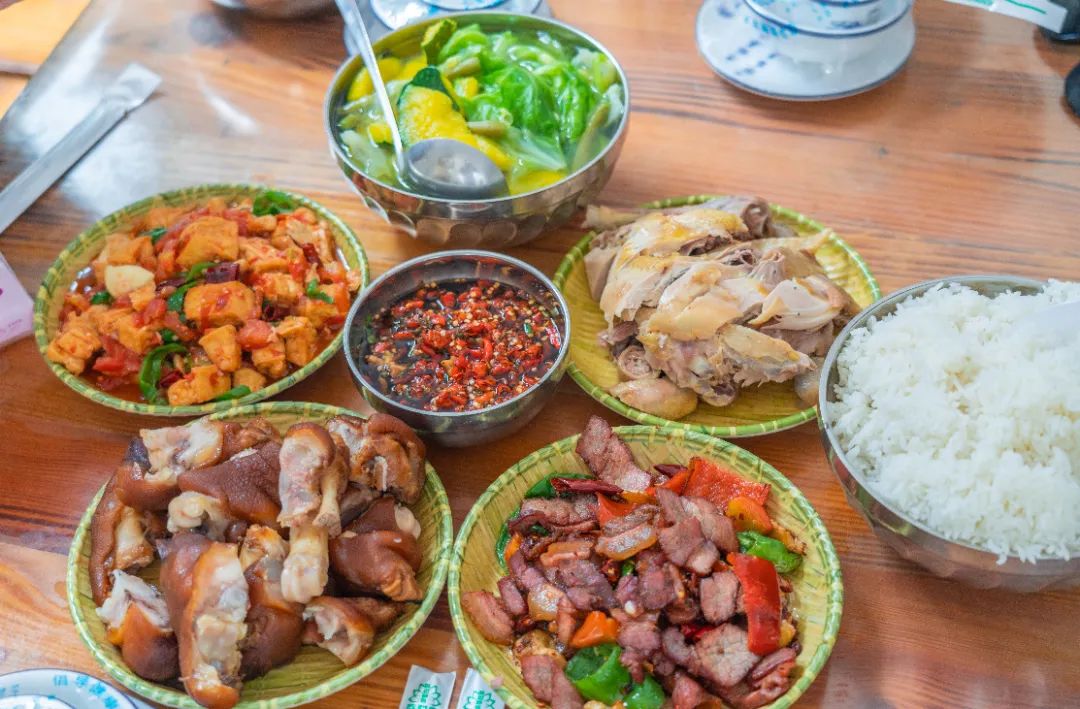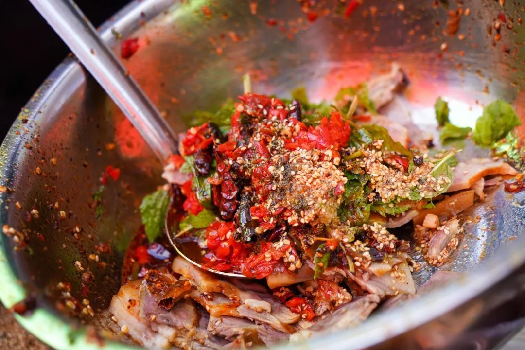当哈尼蘸水鸡摆上桌,不少游人纷纷提问:“到底是吃蘸水还是吃鸡肉?”确实,哈尼蘸水鸡,蘸水不仅仅是调料,更是一道丰盛的“大餐”。