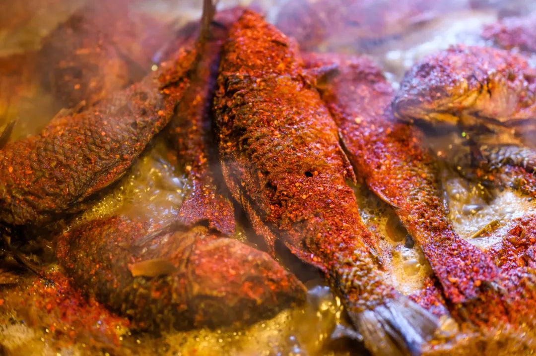 云南有句俗语“蚂蚱也是肉”,比喻某东西虽小仍有价值。所以,蚂蚱、竹虫、蜂蛹早已上了元阳老百姓的餐桌。梯田是养鱼的好地方,因水是流动的、清澈的,在这样的条件下,养出来的鱼肥美、骨酥、味甜。哈尼人还擅长腌制腊肉,烟熏腊肉风味独特,是闻名遐迩的哈尼长街宴上备受关注的一道美味。