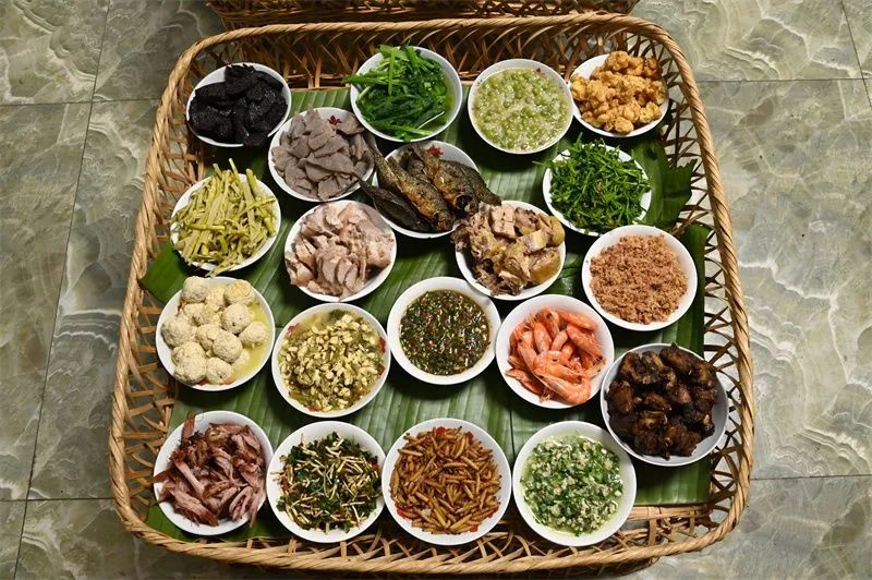 据了解,仅由南马初步辑录的《金平美食名称大全》一书就收录了总计1003道(种)佳肴美食。其中,日常畜肉类300道,日常禽蛋类220道 ,天然动物类193道,天然植物类200道,日常小吃类46种,饭酒饮料类28种,专项独特类16种。仅以日常禽蛋类来看,在220道佳肴中,香茅草鸡、鬼鸡、芭蕉叶火烧鸡;鸡蛋煎老鸹花、鸡蛋煎白参、鸡蛋煎马蹄菜等等菜名,是其他地方少有的。这是金平肴馔美食“味甲天下”的“第一味”:数量众多,配料独有,做工独特,口味宽泛,具有丰厚的民族文化元素。