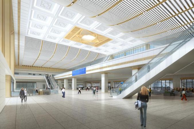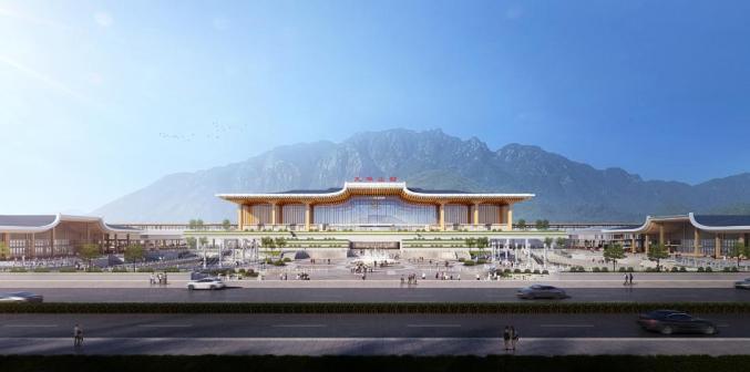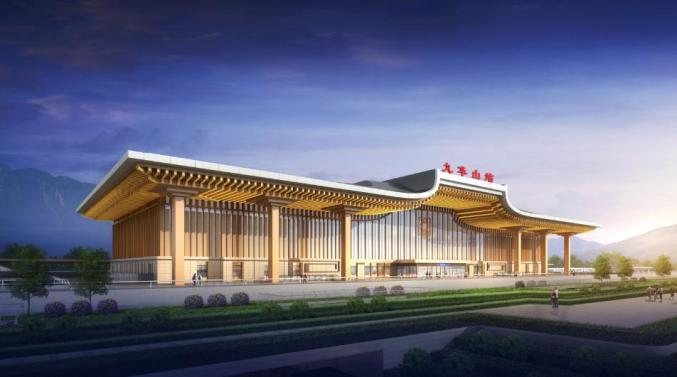 新建九华山站是青阳县第一座高铁站,站房距九华山风景区6公里,距离青阳县城2公里,总建筑面积2.87万平方米,其中主站房建筑面积约1.49万平方米,站房主体共上下两层。站房采用线侧平式布置,站台规模为3台7线,其中基本站台1座、中间站台2座;进出站采用“上进下出”流线模式,设有10米宽进站天桥和10米宽出站地道各一座。