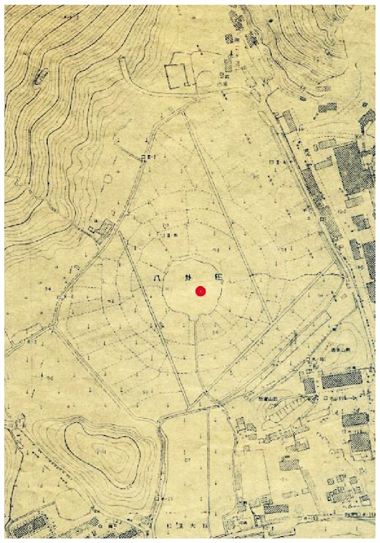 20世纪70年代八卦田的地形图,标注处为陈敱永墓地。