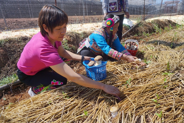 在省委组织部驻村工作队帮助下,插甸镇还引进省农科院食用菌种植专家李树红在老木坝村成立云南省专家基层科研工作站,探索了“专家工作站+示范基地+农户+合作社”的人才帮扶模式。李树红专家团队不仅为当地选育品种示范推广,还常态化开展食用菌种植、采收、加工技术培训,为当地群众发展林下经济提供了智力支持。
