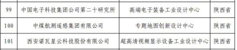 日前,工信部公布了第六批国家级工业设计中心名单,西安市新增3家国家级工业设计中心,分别为中国电子科技集团公司第二十研究所高端电子装备工业设计中心、中煤航测遥感集团有限公司专题地图创新设计中心、西安诺瓦星云科技股份有限公司超高清视频显示设备工业设计中心。截至目前,我市已有8家国家级工业设计中心。